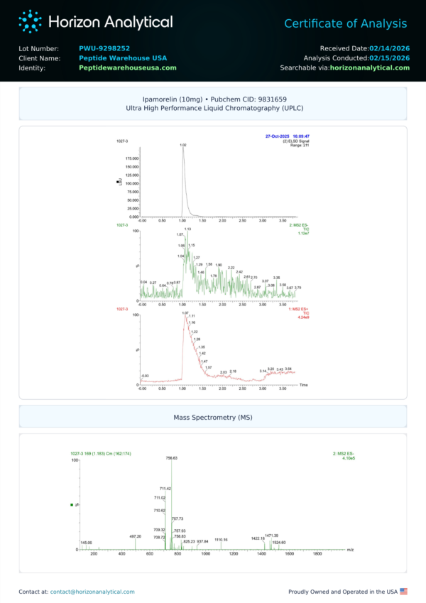 Ipamorelin is a synthetic peptide classified as a growth hormone secretagogue. It is commonly studied for its ability to stimulate the natural release of growth hormone (GH) from the pituitary gland.