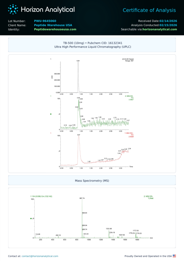 TB-500 is a synthetic version of a fragment of Thymosin Beta-4, a naturally occurring peptide found throughout the body. It is widely studied for its role in cellular migration, tissue repair, and overall recovery support.